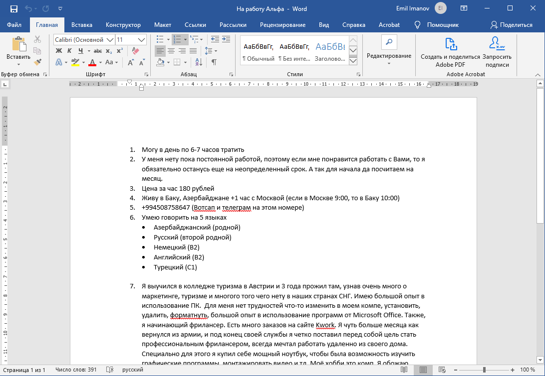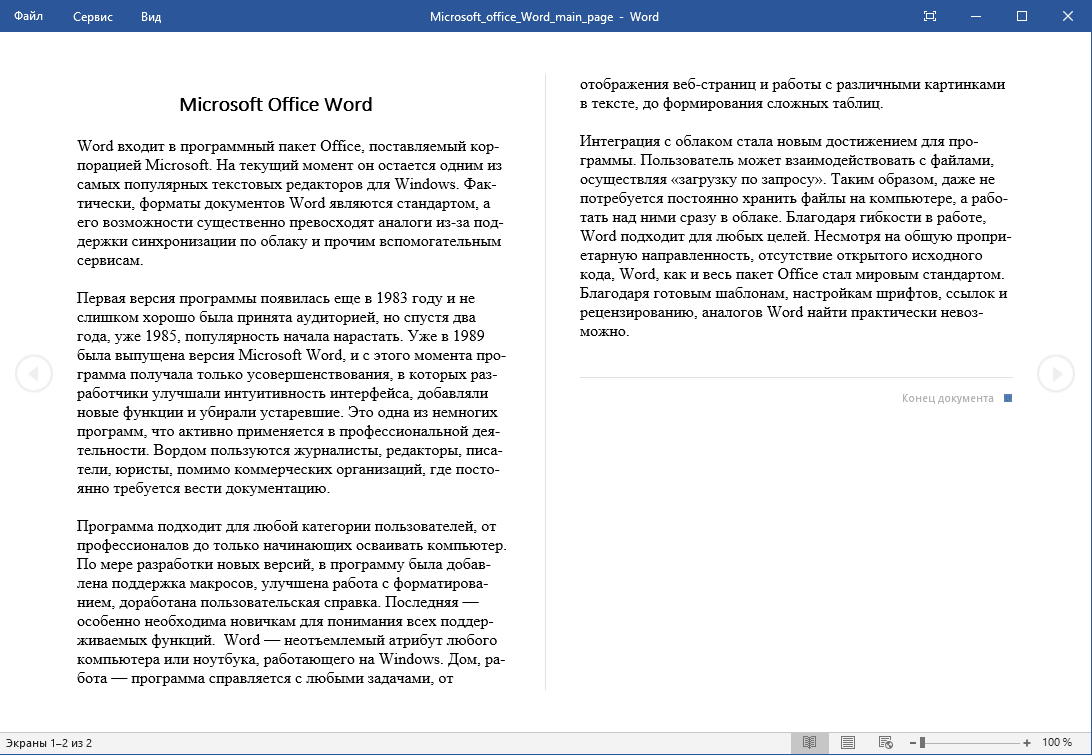 Готовый документ можно сохранить в нескольких форматах. Самый популярный формат называется .docx. Для его создания используется язык разметки XML, на что указывает последняя буква в названии формата. Чтобы обеспечить совместимость со старыми текстовыми редакторами, пользователи получили возможность сохранять документы в устаревшем формате .doc без разметки. Кроме того, разработчики позаботились о безопасности. Чтобы не потерять информацию в результате внезапного отключения электроэнергии, программа регулярно создает временные копии файла. Они автоматически восстанавливаются при следующем запуске программы.