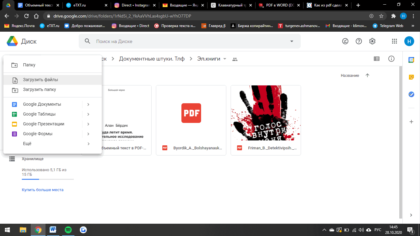 Используйте Google Disc, чтобы преобразовать PDF в Word. Загрузите необходимый файл через «Создать».