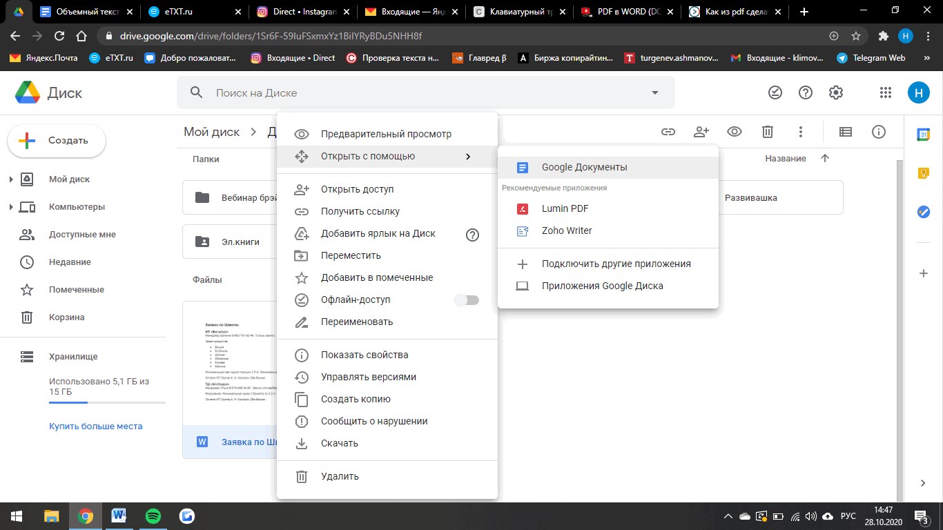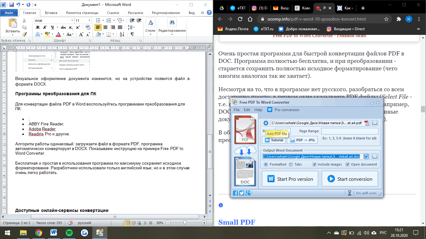 Рассмотрим преобразование с помощью Microsoft Word и облачного хранилища Google Disc. Способы актуальны для небольших файлов без картинок.