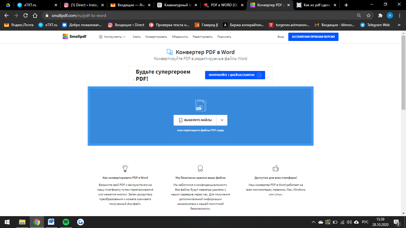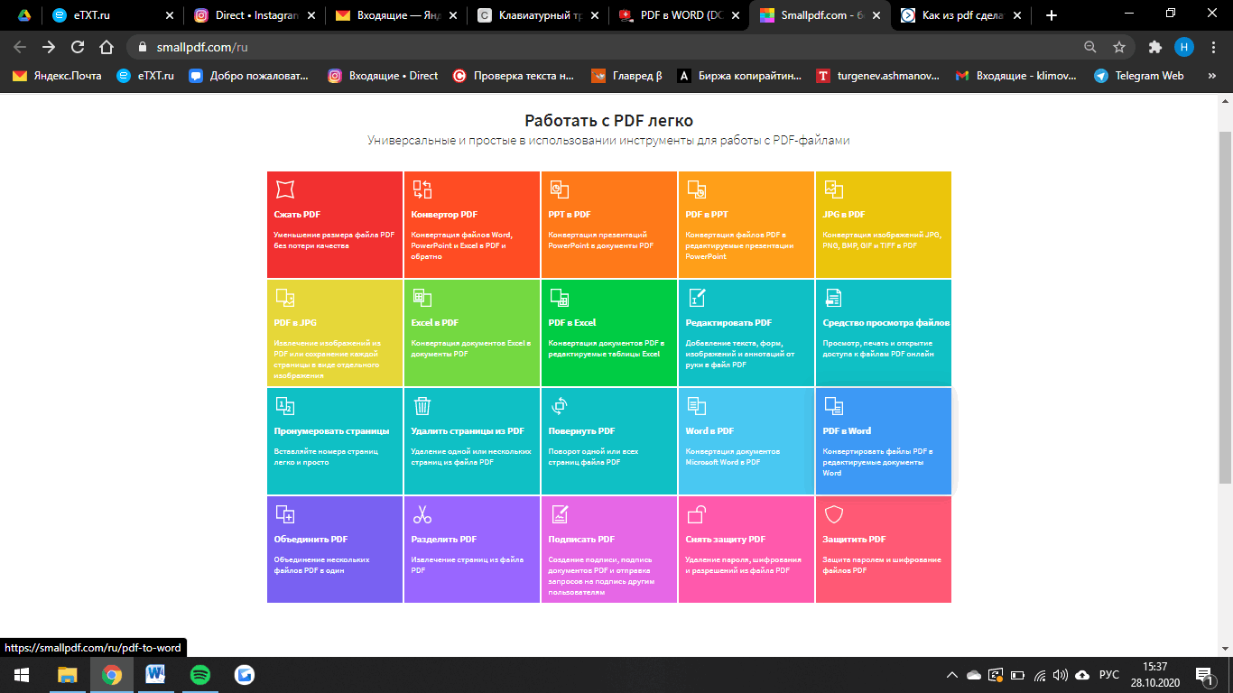 1. Перейдите на сайт и выберите «Конвертер PDF в Word».