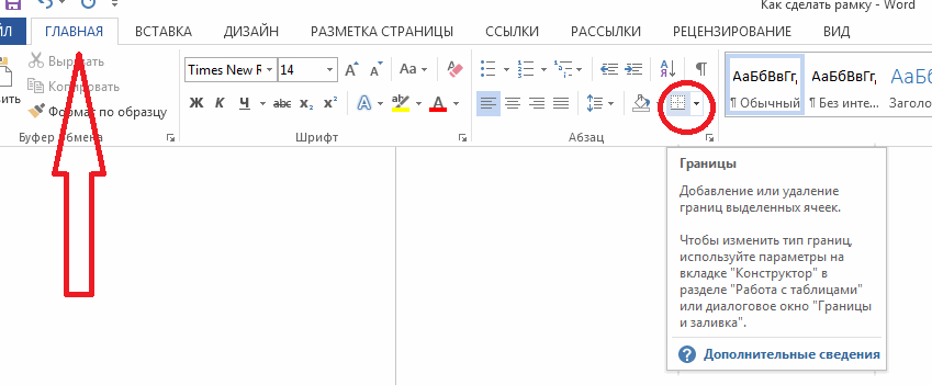 1) Необходимый инструмент находится в меню «Главная», и называется он «Границы».