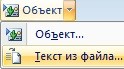 Этот способ примечателен тем, что дает возможность редактировать содержимое старого документа, используя его в схеме нового документа. Для этого необходимо зайти в меню «Вставка» и выбрать функцию «Объект». В выплывающем окне необходимо выбрать – «Текст из файла».